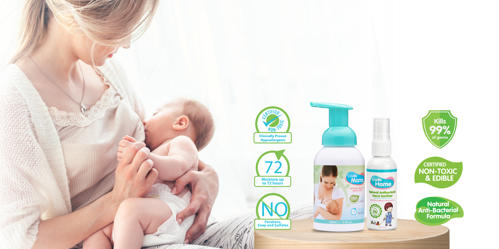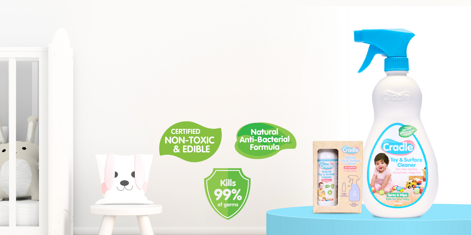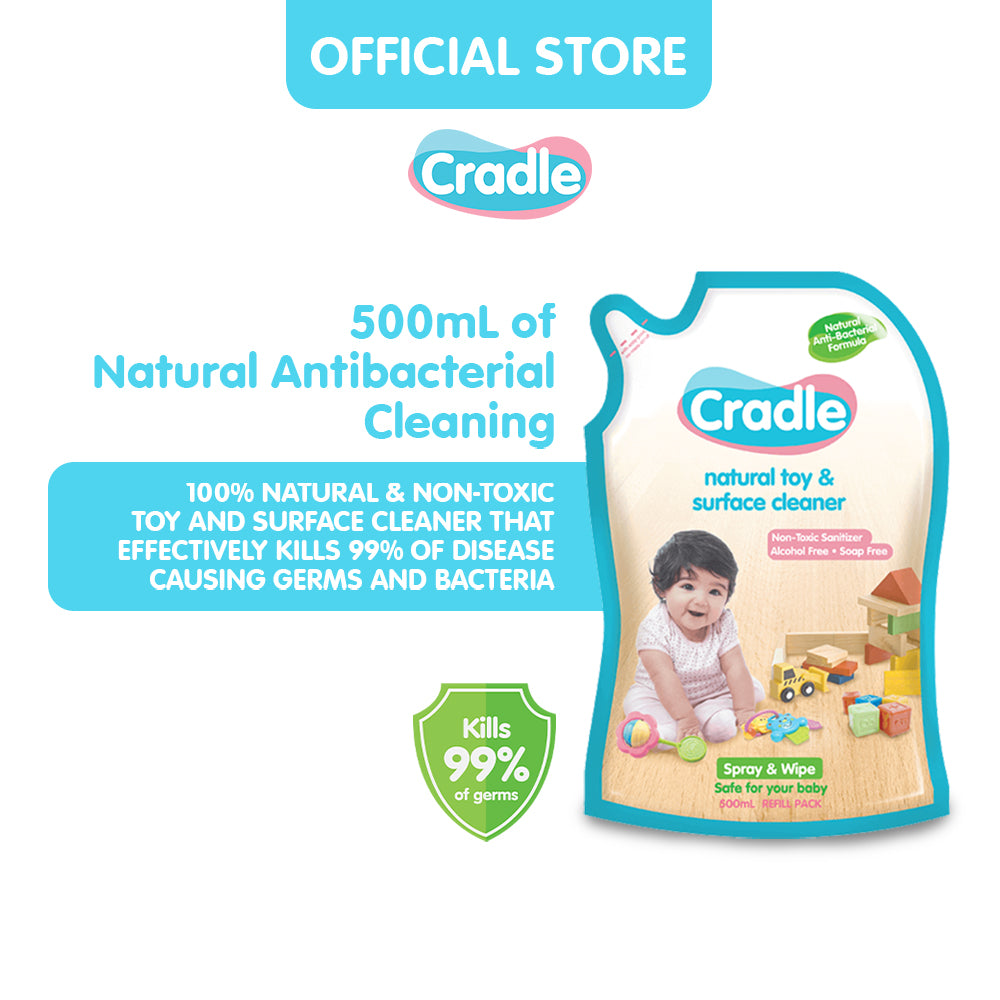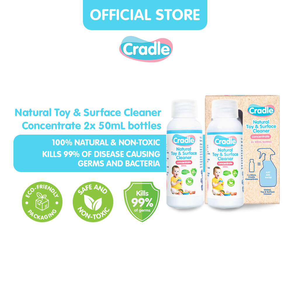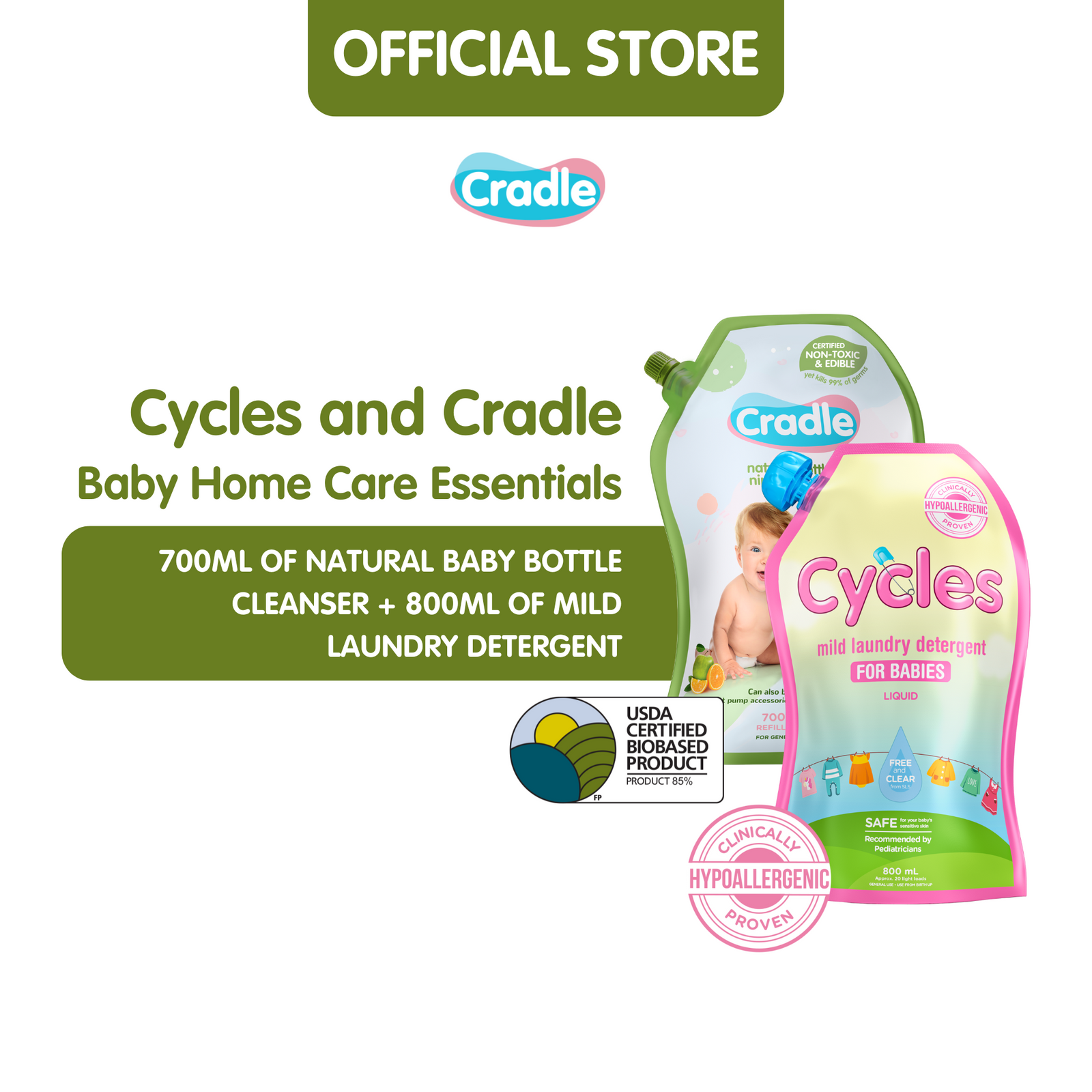 Cradle Natural Cleanser is a line of safe and natural yet effective baby cleanser for your little ones. Our best-seller is Cradle Natural Bottle and Nipple Cleanser. It is the first USDA biopreferred baby bottle wash in the country. It is certified non-toxic and edible, yet kills 99% of disease-causing germs.